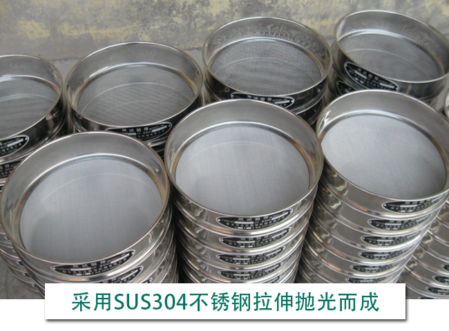 7、試驗篩篩框采用SUS304不銹鋼材質(zhì)拉伸拋光而成,壁厚0.6mm,光澤均勻一致,堅固耐用,不存在磁性;
